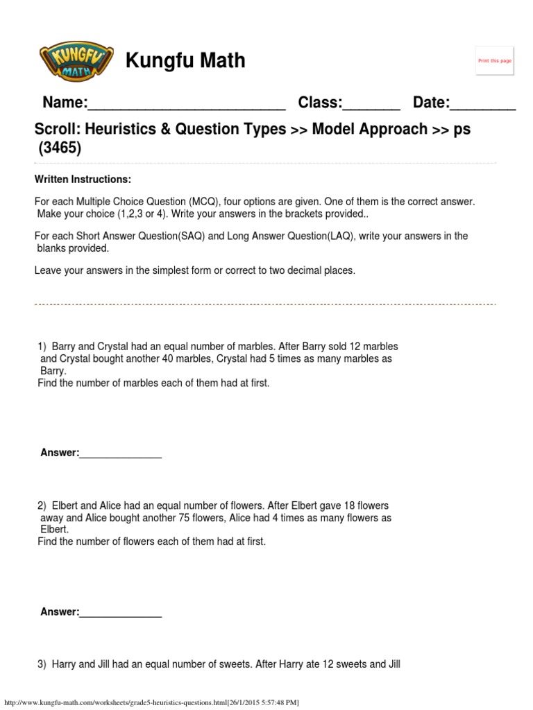 Fifth grade math worksheets with answers pdf - mathskills4kids.com Free printable PDFs for Math practice Encourage your kid's math flexibility as they work through our fifth grade math worksheets with answers pdf. These worksheets have been specially designed to enhance their math problem solving skills as well as offer them great talents to logically work out solutions.
